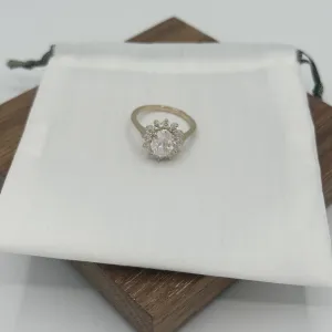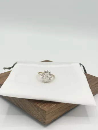 Laissez-vous séduire par la magnificence de la bague Navette, une création française de Guiot de Bourg. En plaqué or 3 microns, ornée de 12 oxydes de zirconium en triangle, cette bague conjugue éclat somptueux et design raffiné.