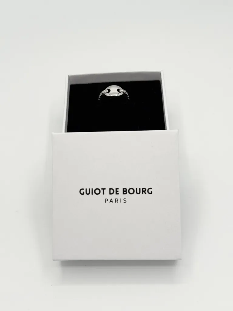 Élégante et intemporelle, la bague Nirina de Guiot de Bourg est une création française en argent 925 qui sublime vos mains avec sa sophistication discrète et son design raffiné.