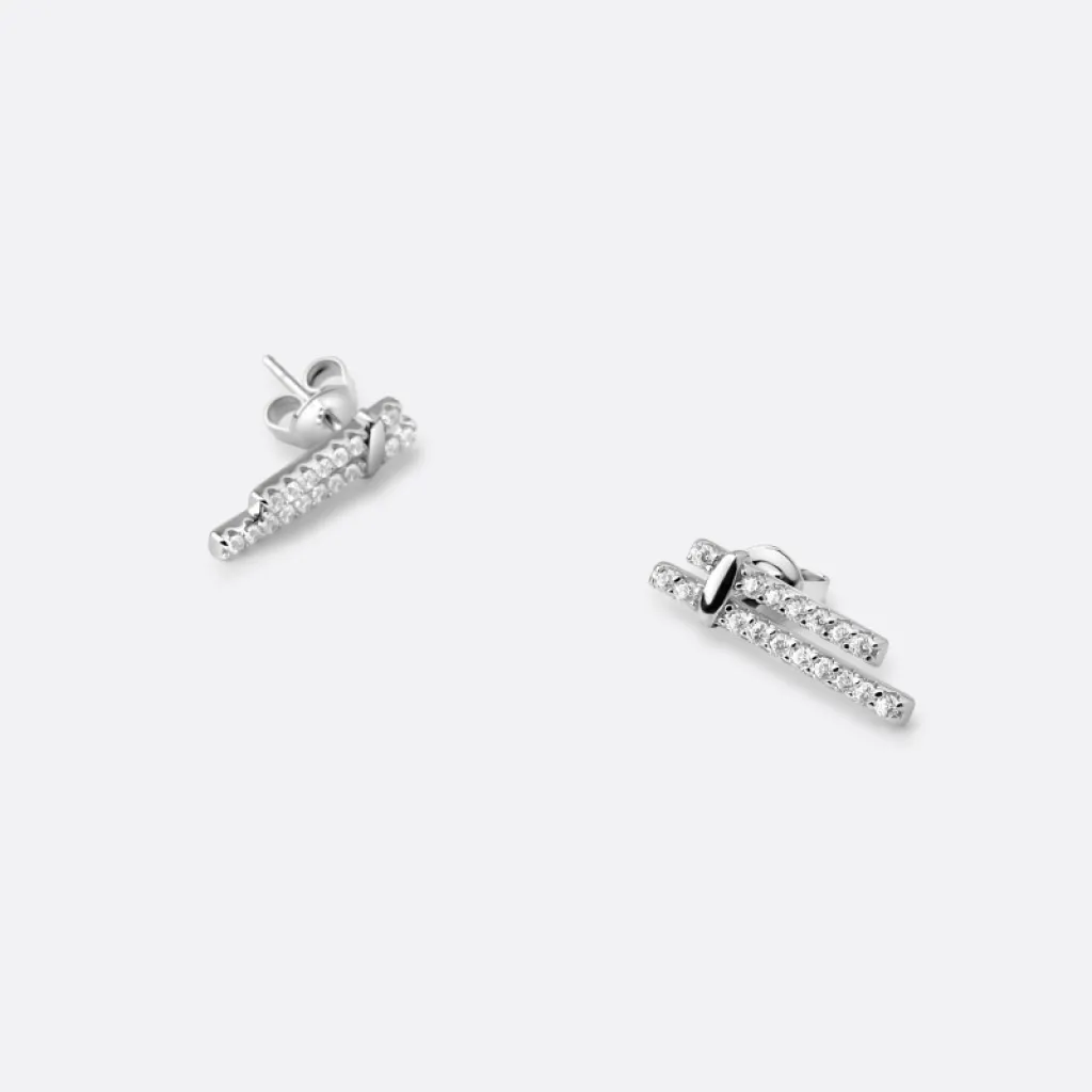 Les boucles d'oreilles Ada, une création raffinée de Guiot de Bourg, captivent par leur élégance discrète. En argent 925 et ornées de petites barres incrustées de zircons étincelants, elles apportent une touche de brillance et de sophistication à chaque tenue.