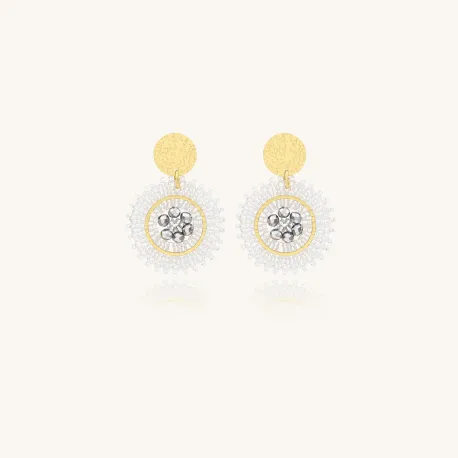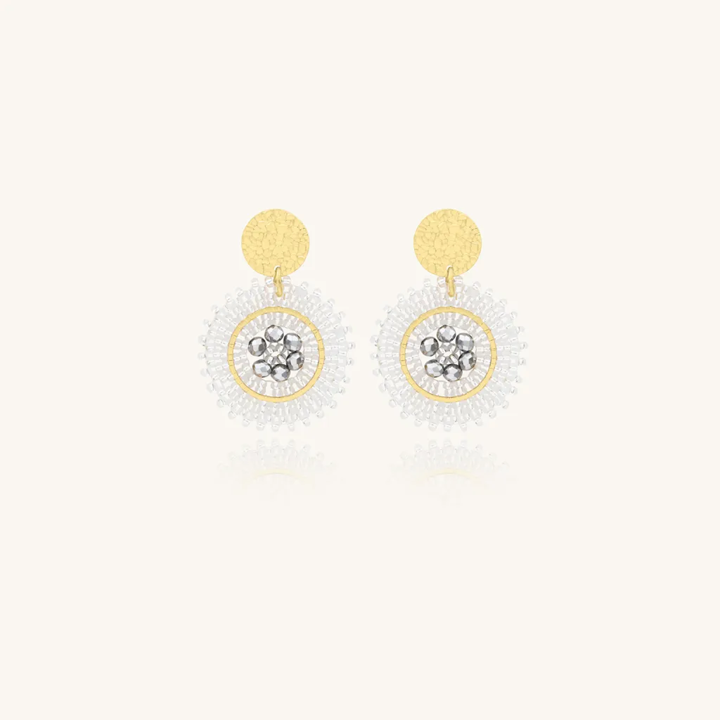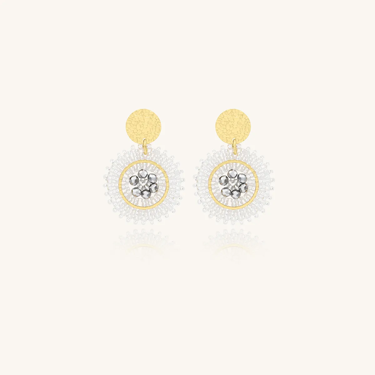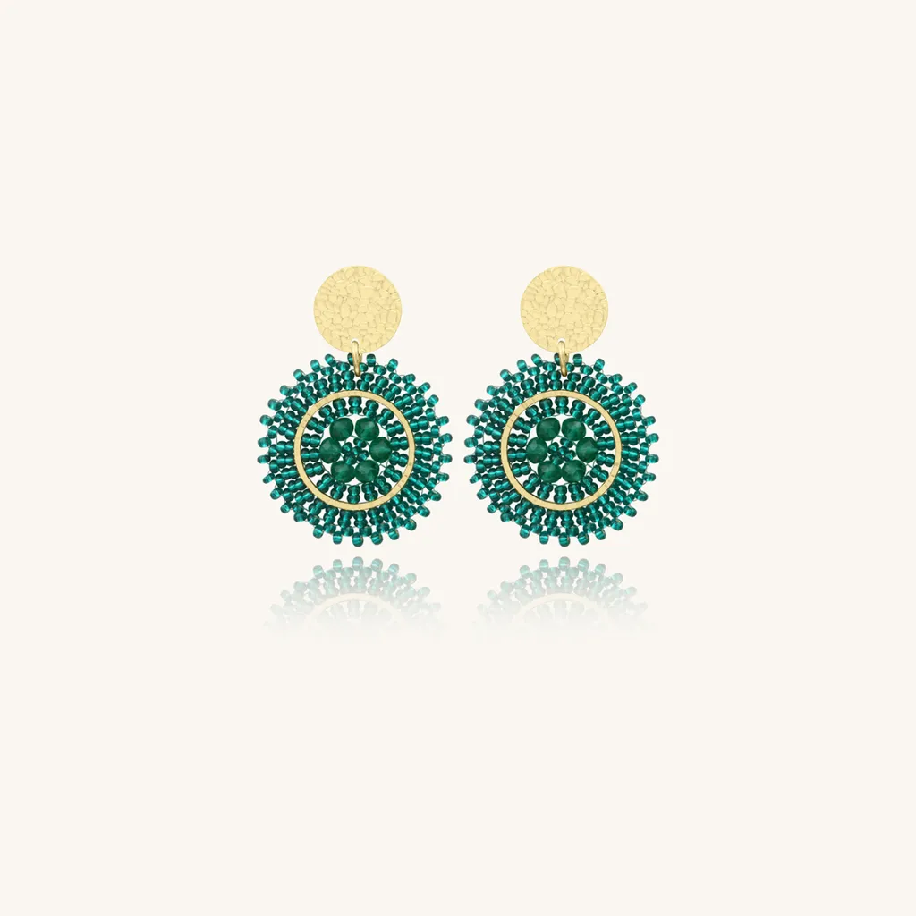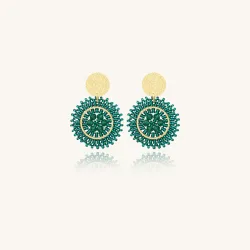 Les boucles d’oreilles baby espagnola, dotées d’un fermoir "à poussoir", charment depuis longtemps par leur style sud américain, il s'agit de la petite de cette série qui fait partie des BEST de la marque. Elles sont minutieusement tissées à la main grâce à un fil invisible, qui relie avec finesse perles et cristaux colorés.