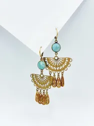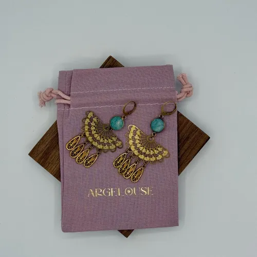 Les boucles d'oreilles Cléopâtre Amazonite d'Argelouse captivent par leur alliance sophistiquée de laiton doré et de pierre amazonite. Ces créations françaises allient élégance et mystère, parfaites pour ajouter une touche royale à votre style.