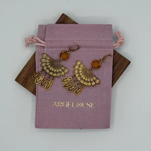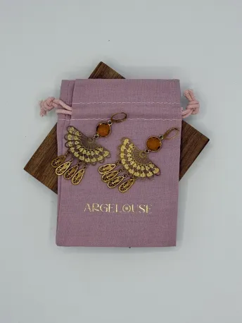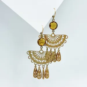 Les boucles d'oreilles Cléopâtre Citrine Jaune, imaginées par la maison Argelouse, se veulent le symbole de la lumière et de l'élégance. Confectionnées en laiton doré, ces boucles subliment le visage par leur éclat discret, rehaussé par la chaleur et la vitalité de la citrine jaune.