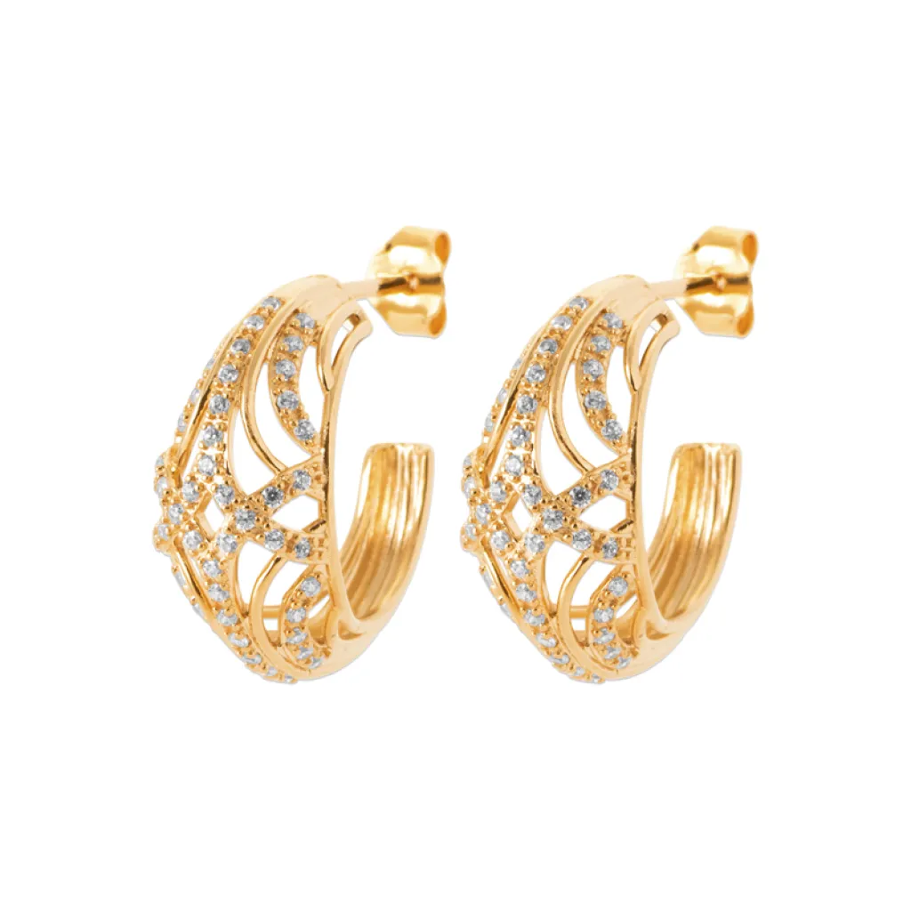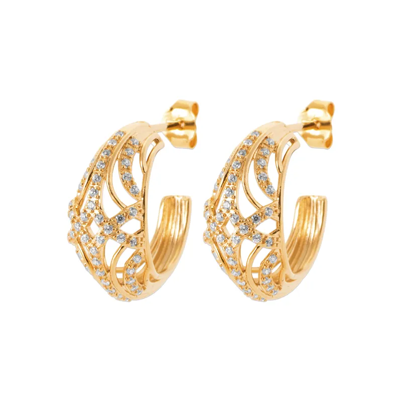 Le plaqué or de haute qualité confère à ces boucles une finition luxueuse et durable, idéale pour accompagner toutes vos tenues, que ce soit pour une occasion spéciale ou pour ajouter une touche de glamour à votre quotidien. Les détails microsertis capturent et reflètent la lumière pour un effet scintillant qui ne passera pas inaperçu.