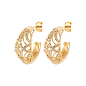 Sublimez votre allure avec ces boucles d'oreilles créoles en plaqué or, ornées de détails microsertis qui captent la lumière pour un éclat irrésistible.
