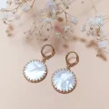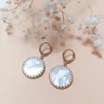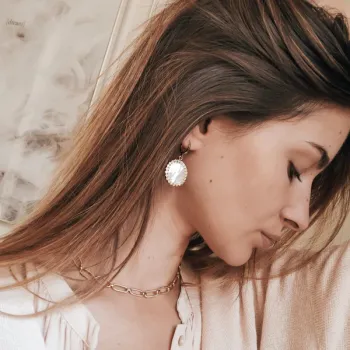 Chaque boucle est ornée d'une majestueuse pierre de nacre blanche de 20 mm de diamètre. La nacre, avec ses reflets irisés et sa douceur inégalée, est célébrée pour sa symbolique de calme et de sérénité. Elle évoque des sentiments de paix intérieure et de beauté intemporelle, capturant la lumière avec une grâce unique.