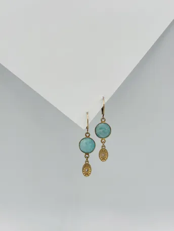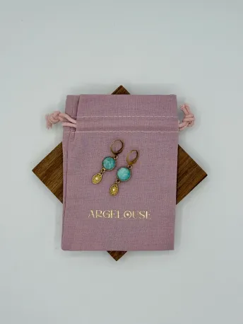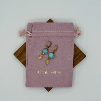 Au cœur de leur beauté se trouve l'amazonite, une pierre naturelle prisée pour ses propriétés lithothérapeutiques. Connue pour apaiser le système nerveux et favoriser l'équilibre émotionnel, l'amazonite est souvent associée à des sentiments de paix et de calme. Sa teinte douce et captivante se marie harmonieusement avec l'éclat du laiton doré, offrant un contraste enchanteur qui attire l'attention tout en restant délicat.
