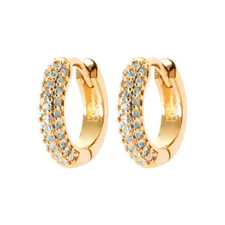 Ajoutez une touche de sophistication à votre look avec ces élégantes mini créoles en plaqué or 18k. Leur sertissage de zircons offre une brillance éblouissante, parfaite pour toute occasion.