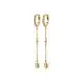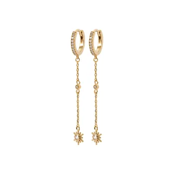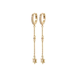 Leur sertissage minutieux de zircon capte la lumière à chaque mouvement, ajoutant un éclat subtil et sophistiqué à votre apparence. La véritable pièce de résistance de ces créoles réside dans leur chaînette délicate qui se termine par une étoile scintillante, créant une illusion de mouvement gracieux qui attire l'œil vers votre visage. Ces bijoux sont idéaux pour celles qui souhaitent ajouter une touche de magie céleste à leur tenue quotidienne ou lors d'événements spéciaux.