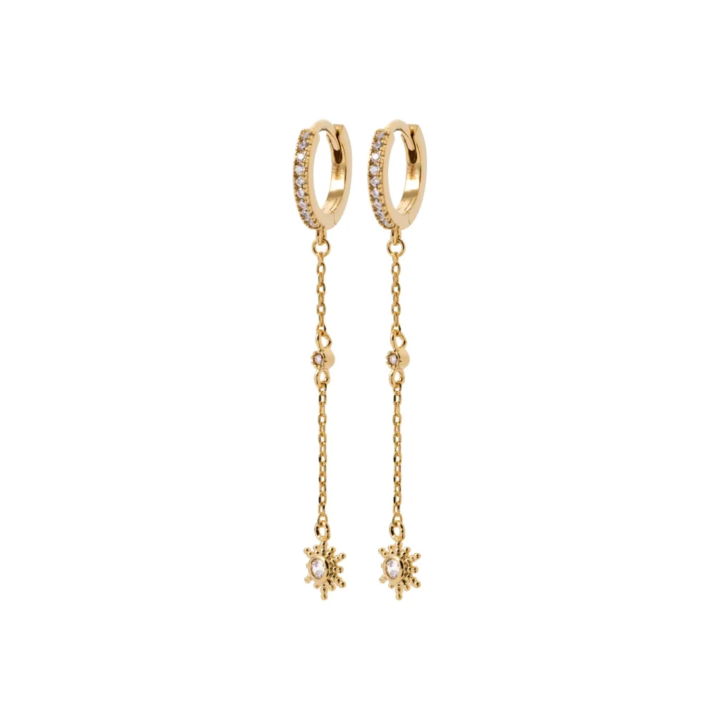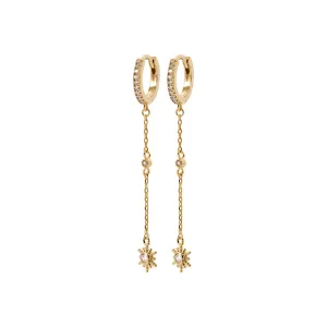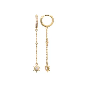 Sublimez votre style avec les mini créoles Stars en plaqué or 18k. Avec un sertissage scintillant de zircon et une délicate chaînette terminée par une étoile, ces boucles apportent une touche céleste et élégante.