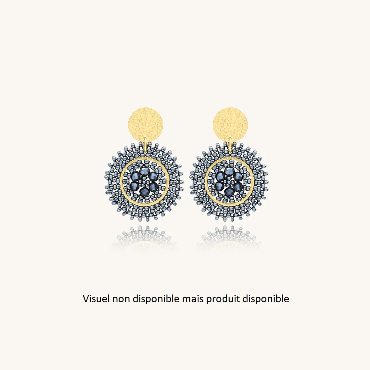 - Finition : Tissage de perles et cristaux, fermoir dormeuse