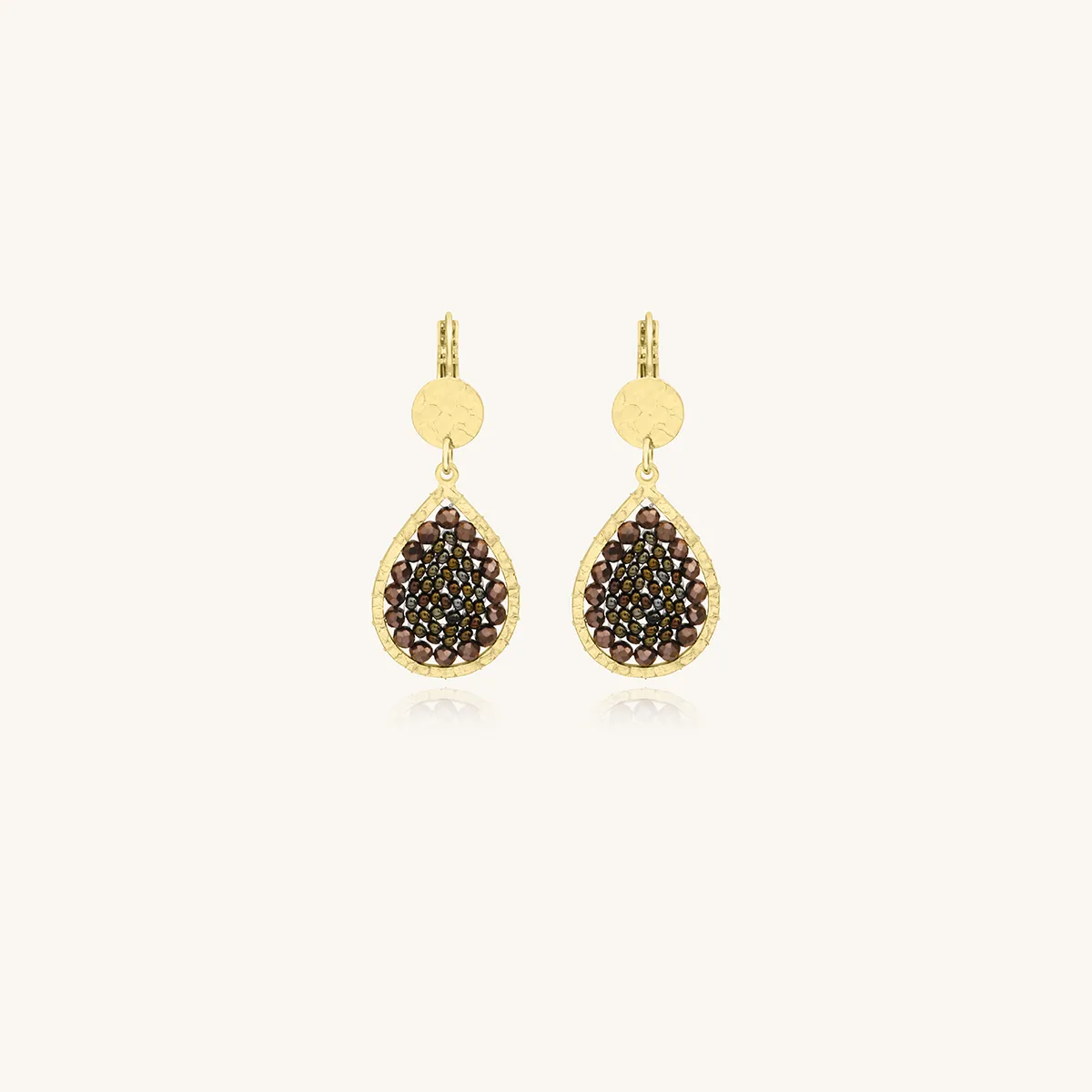 Ce design sophistiqué intègre un tissage minutieux de perles, réalisé entièrement à la main, mettant en avant une attention aux détails et un savoir-faire artisanal remarquable. Le fermoir dormeuse assure une tenue sécurisée et confortable, tandis que leur légèreté garantit une sensation de bien-être tout au long de la journée.