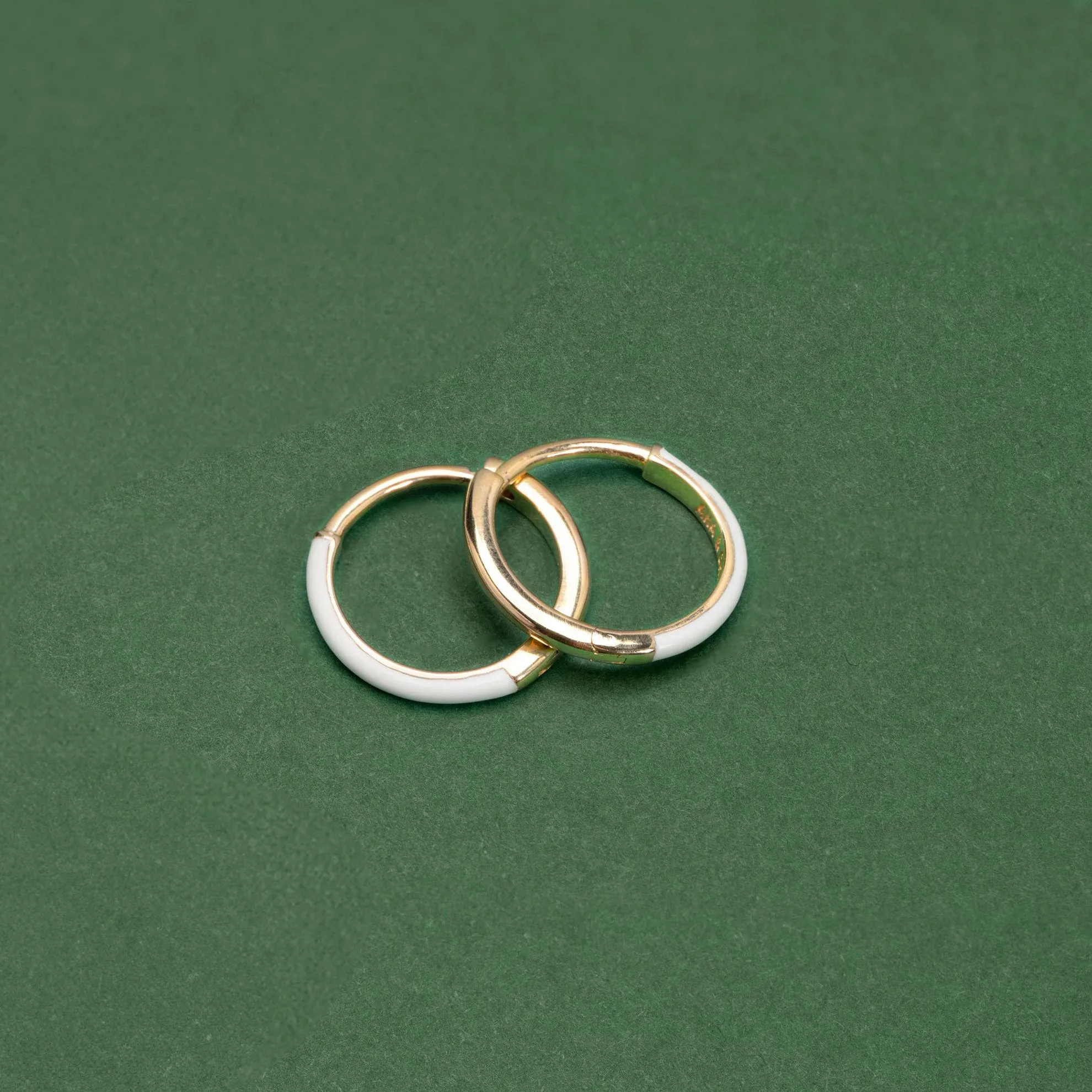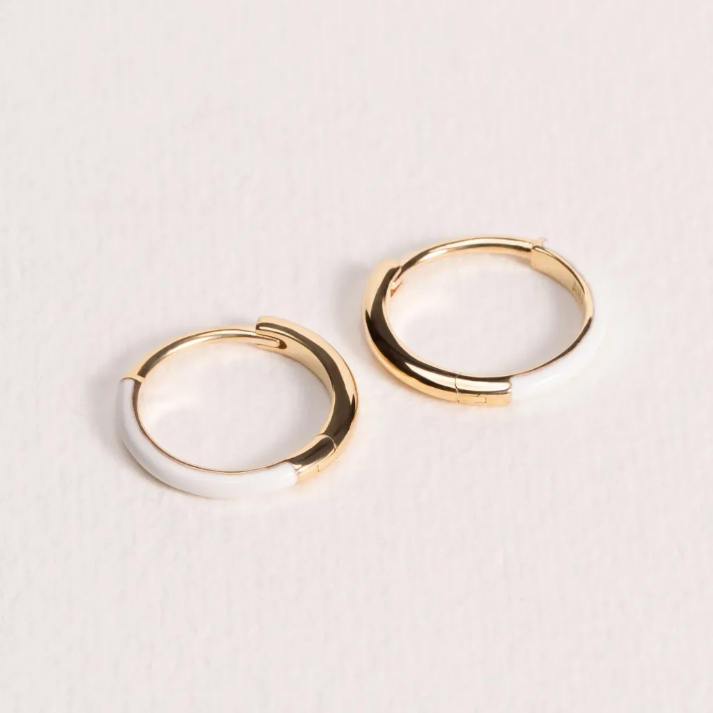 Ces petites créoles ornent l'oreille d'une allure de laque blanc. Élégantes et aériennes, elles se portent aussi bien individuellement qu'avec d'autres bijoux pour un mélange coloré et à la mode. Un indispensable !