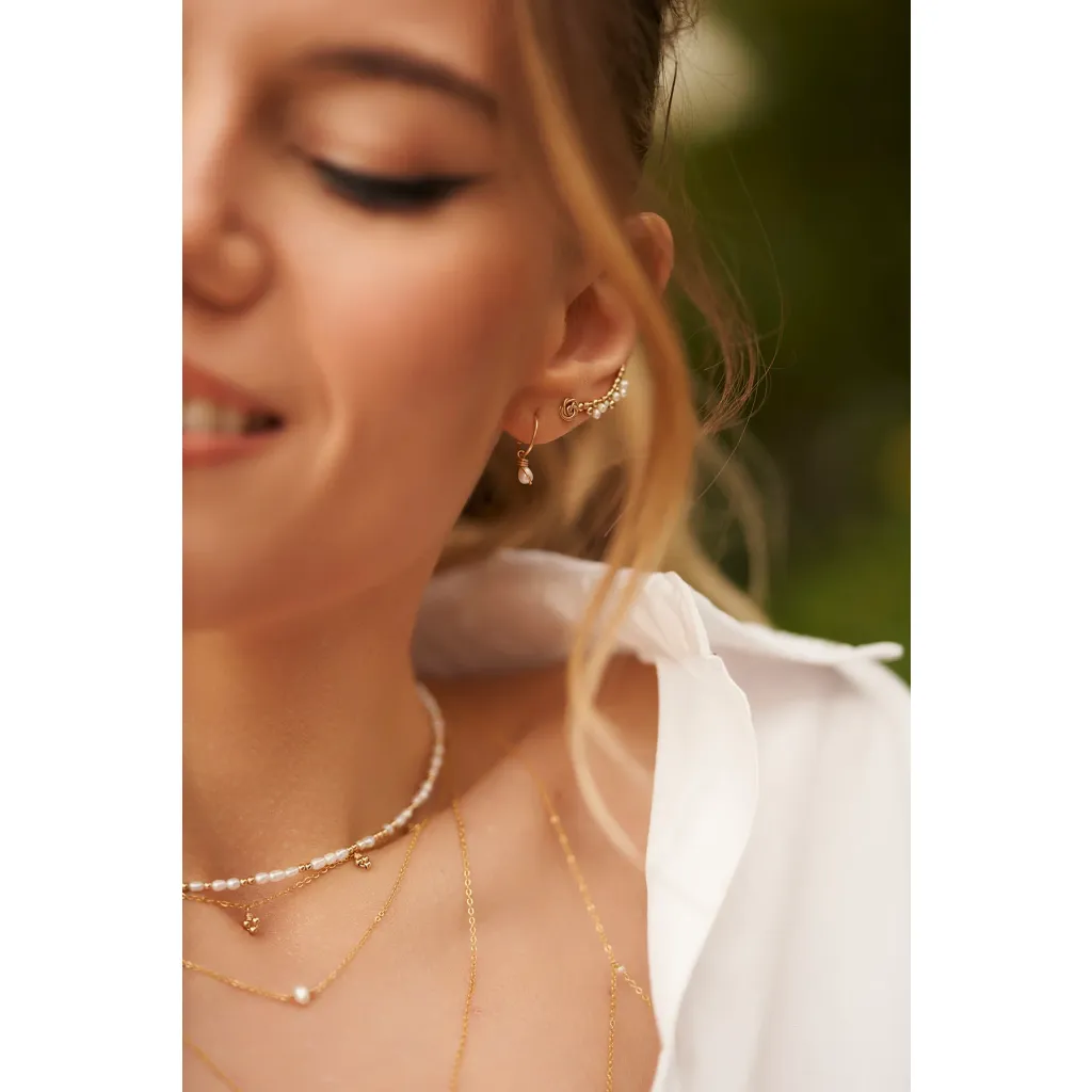 Les mini créoles Stella célèbrent le savoir-faire emblématique de YAY avec une perle de culture élégamment tissée sur un anneau fin en or, offrant une touche de lumière subtile et raffinée à l’oreille.