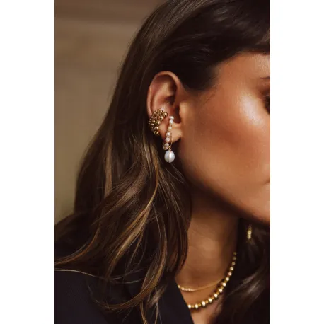 Les créoles Stella sont l'expression parfaite du glamour audacieux et du raffinement, conçues pour celles qui désirent se démarquer. Avec un remarquable diamètre de 8 cm, ces créoles imposent leur élégance et captivent par leur présence imposante. Chaque anneau en or laminé est magnifiquement orné d'une somptueuse perle de culture de 10 mm, ajoutant lumière et prestige à votre allure.