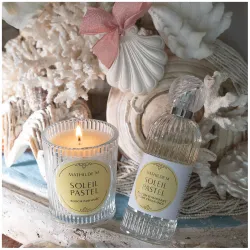 Soleil Pastel est une fragrance captivante qui évoque la chaleur et la magie de l'été. Les notes exotiques et enveloppantes de fleur de tiaré et de noix de coco se rencontrent dans une danse enivrante avec des embruns salés délicatement déposés par la brise marine. Ce parfum délicat s’épanouit dans un accord crémeux de vanille et de patchouli, offrant une expérience olfactive riche et apaisante. Soleil Pastel imprègne par sa chaleur bienfaisante, ravivant l’esprit et évoquant des souvenirs intemporels de journées estivales ensoleillées.
