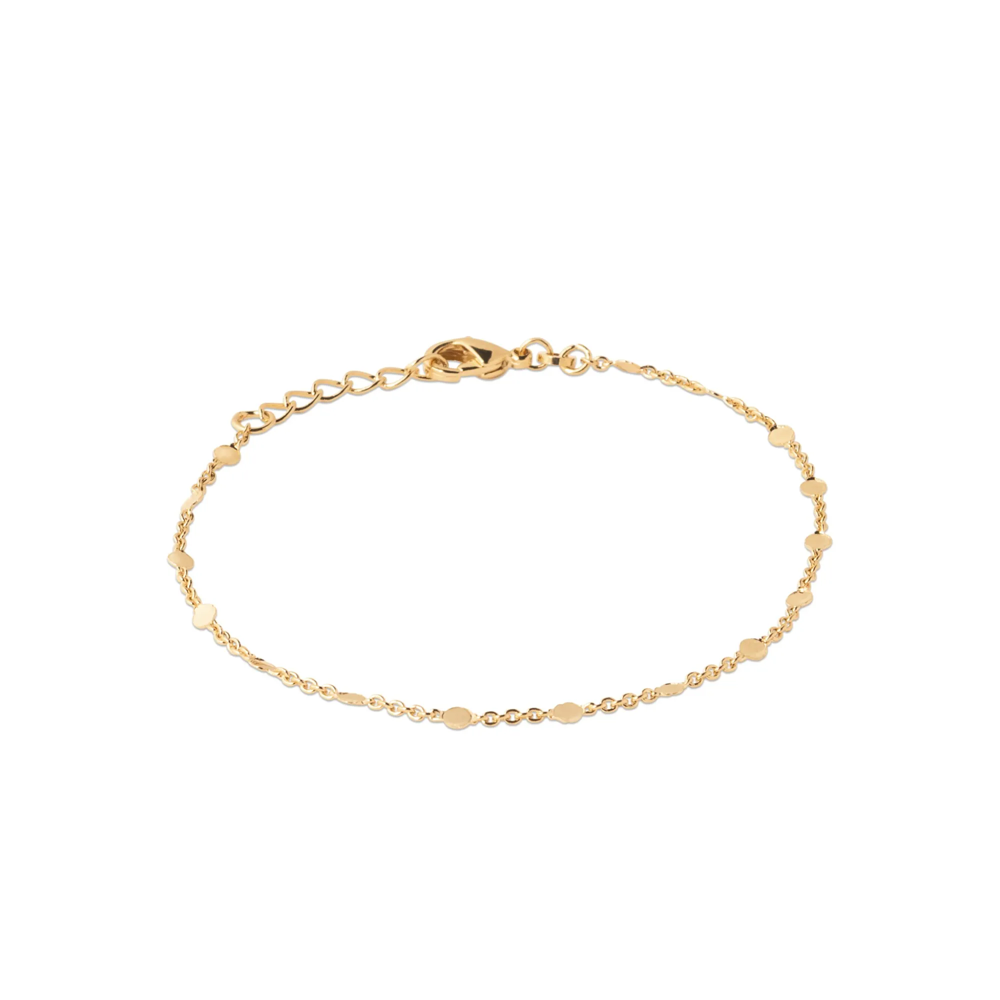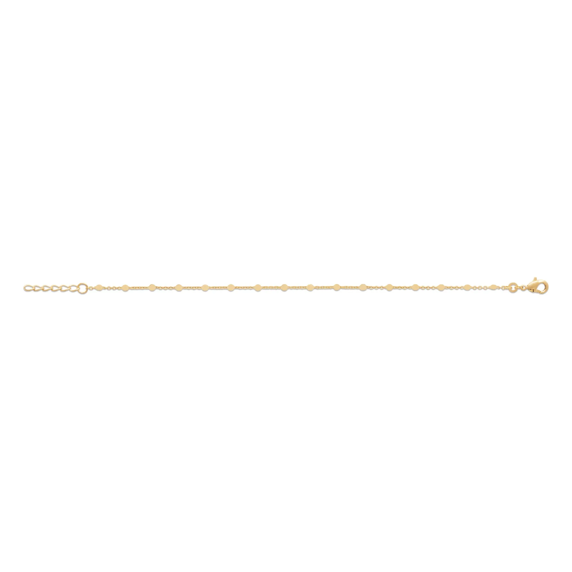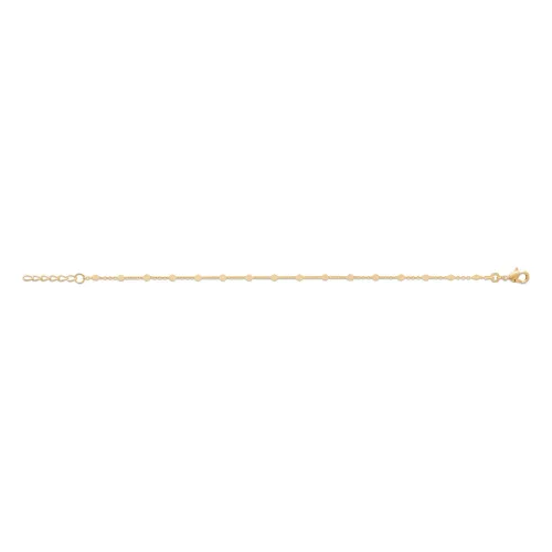 Appréciez le charme discret de notre bracelet chaîne et pastille, en plaqué or brillant 18 carats. Avec sa longueur ajustable de 18 cm, ce bijou est l'allié parfait pour un style raffiné et personnalisé.