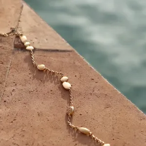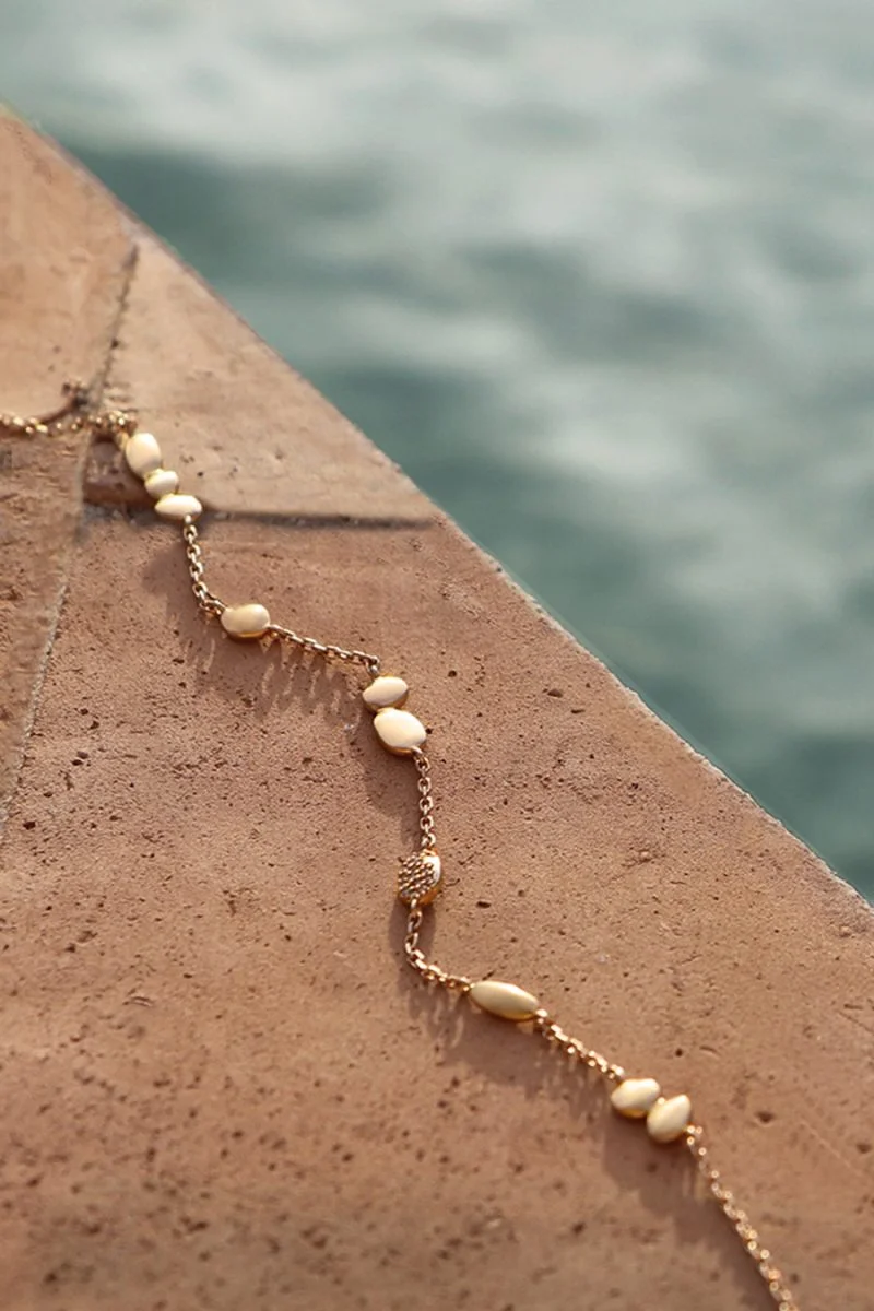 Laissez-vous charmer par le bracelet fin Galets de Ylume, une délicate composition en plaqué or 750 millièmes (18 carats), qui joue subtilement entre chaînette et galets, certains unis et d'autres rehaussés de zircons. Sa couleur dorée champagne mate ajoute une touche élégante à votre poignet.
