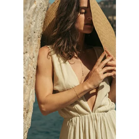 Fabriqué en or 100% recyclé et plaqué or 750 millièmes (18 carats), ce bracelet reflète un engagement fort envers l'éco-responsabilité sans compromettre le luxe. Sa finition dorée champagne mate lui confère une allure sobre et raffinée, faisant de ce bijou une pièce maîtresse qui s'adapte à toutes les occasions.