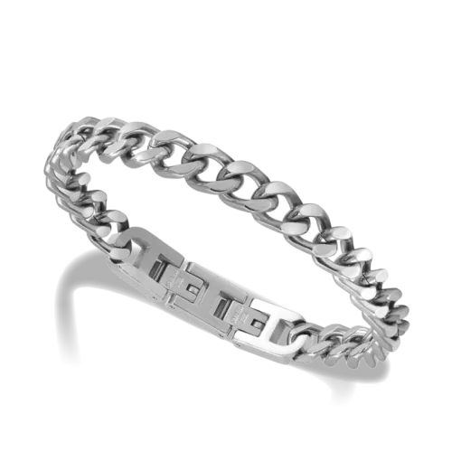 Le bracelet Dandy de Rochet, en acier poli, allie élégance et robustesse pour un style masculin sophistiqué.