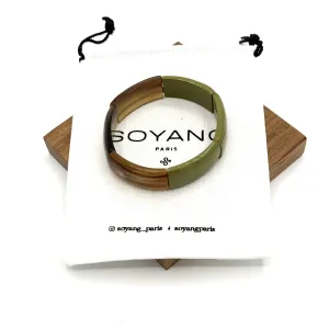 Sublimez votre poignet avec ce bracelet élastique fin laqué vert cèdre, une création chic et sereine de Soyang Paris. Fabriqué en corne de buffle et de zébu, il combine élégance naturelle et confort moderne grâce à son fil élastique discret.