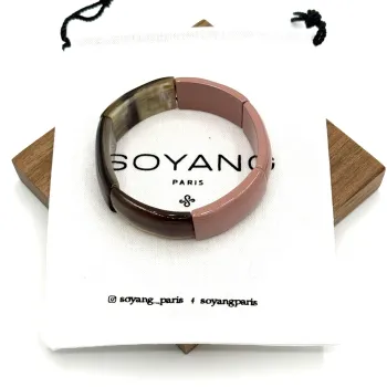 Ajoutez une touche de délicatesse à votre tenue avec ce bracelet élastique fin laqué vieux rose, une création élégante et féminine de Soyang Paris. Fabriqué en corne de buffle et de zébu, il allie subtilité et confort grâce à son fil élastique discret.