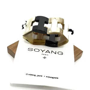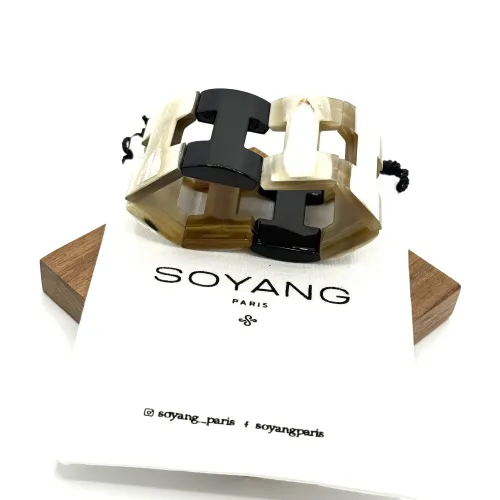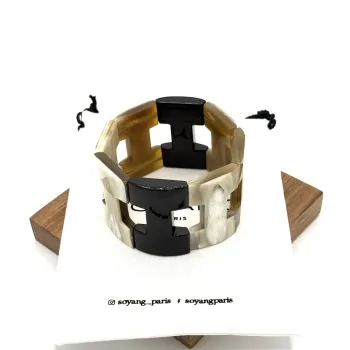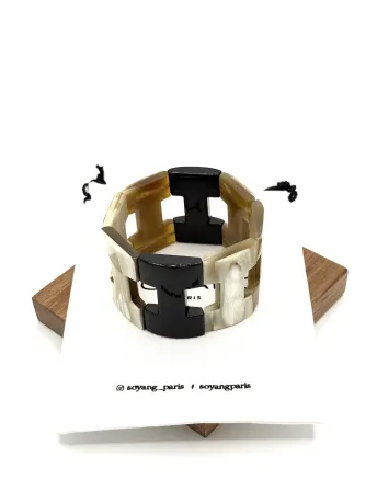 La corne de buffle et de zébu, par nature matériau noble et écologique, témoigne de l'engagement de Soyang envers l'artisanat responsable. Chaque pièce est unique, faisant de votre bijou un élément distinct de votre style personnel grâce aux variations naturelles de la corne.