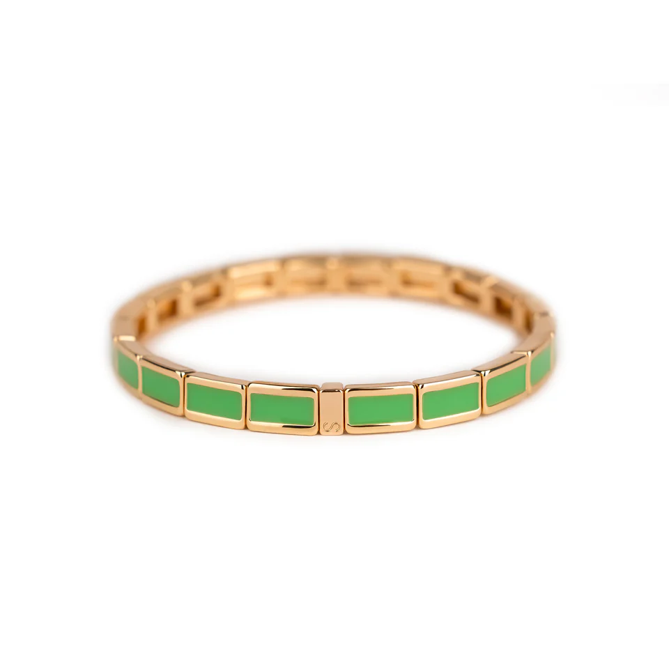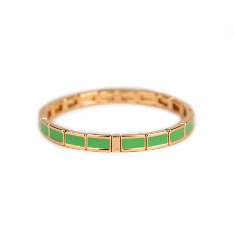 Égayez votre look avec le bracelet fin serti citron vert, une pièce vibrante conçue par Simone à Bordeaux. Ce bracelet en laiton émaillé se distingue par ses petites perles rectangulaires colorées qui diffusent une énergie vive et joyeuse, parfaite pour rehausser votre garde-robe.