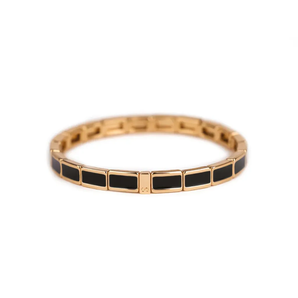 Rehaussez votre élégance au quotidien avec le bracelet fin serti noir, une magnifique création française de Simone à Bordeaux. Conçu en laiton émaillé, ce bracelet se distingue par ses petites perles rectangulaires colorées, qui apportent une touche de sophistication et de dynamisme à votre style.