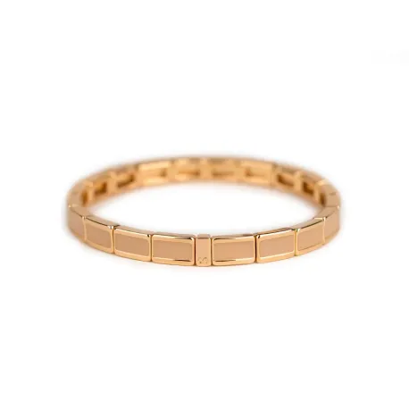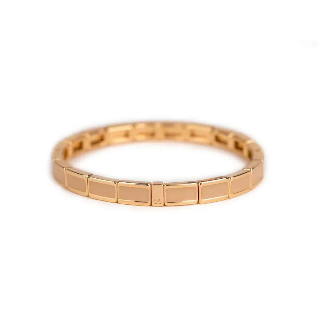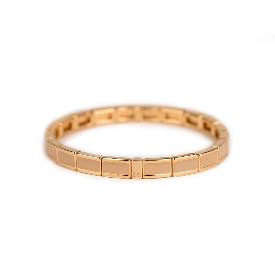 Évoquez la douceur de l'été avec le bracelet fin serti sable, une création délicate de Simone à Bordeaux. Ce bijou raffiné, agrémenté de petites perles rectangulaires colorées et monté sur un élastique unibrin, allie élégance et confort.