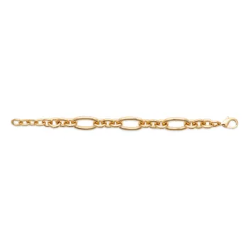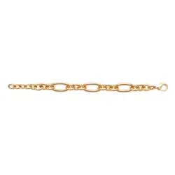 Optez pour une allure résolument contemporaine avec ce bracelet en plaqué or 18 carats. Ses maillons épais et audacieux capturent l'attention, tandis que la texture lisse et polie assure une brillance éclatante. Fabriquée avec une minutie exceptionnelle, cette pièce combine magnifiquement la puissance visuelle et l'élégance subtile, idéale pour faire une déclaration de mode confiante.