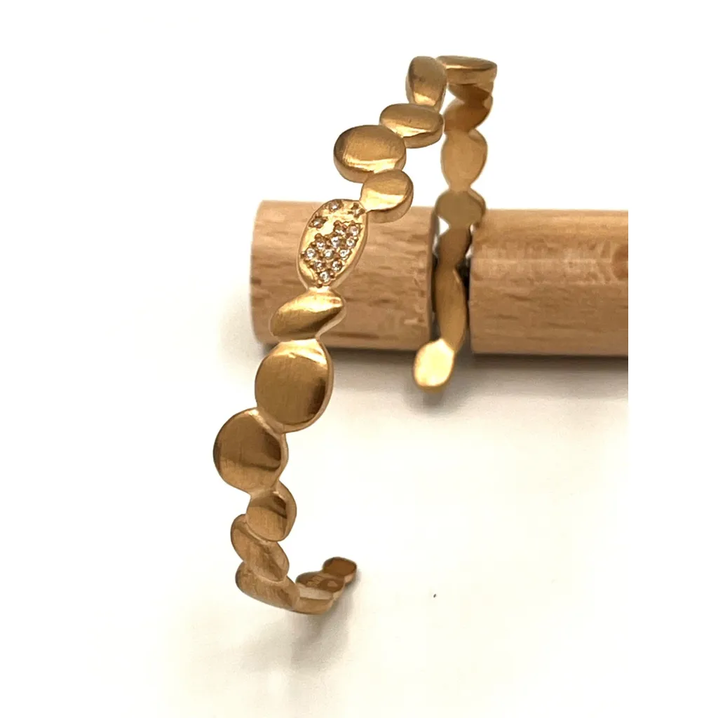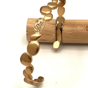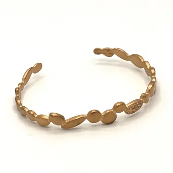 Laissez-vous envoûter par l'élégance éternelle de ce bracelet jonc plaqué or 18 carats, sublimé d'une douce teinte dorée champagne et mate. Des incrustations de zircons ajoutent une touche de sophistication et une étincelle à votre poignet.