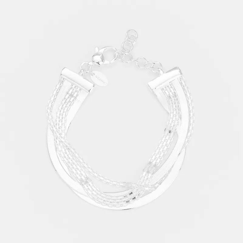 Le bracelet Lois de la marque Canyon est une pièce élégante en argent 925, composée de quatre chaînettes, dont deux chaînes serpent plates. Ce design unique mélange simplicité et sophistication, idéal pour ajouter une touche de luxe discret à votre style.