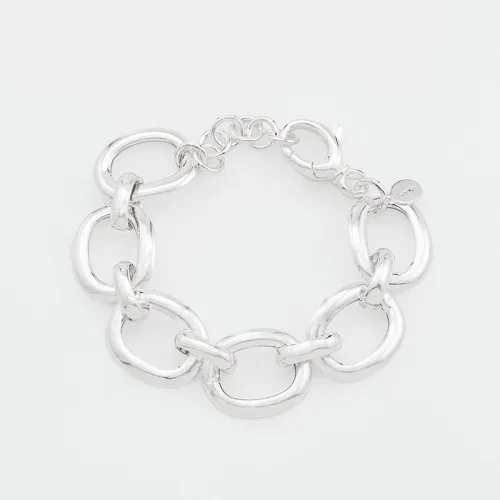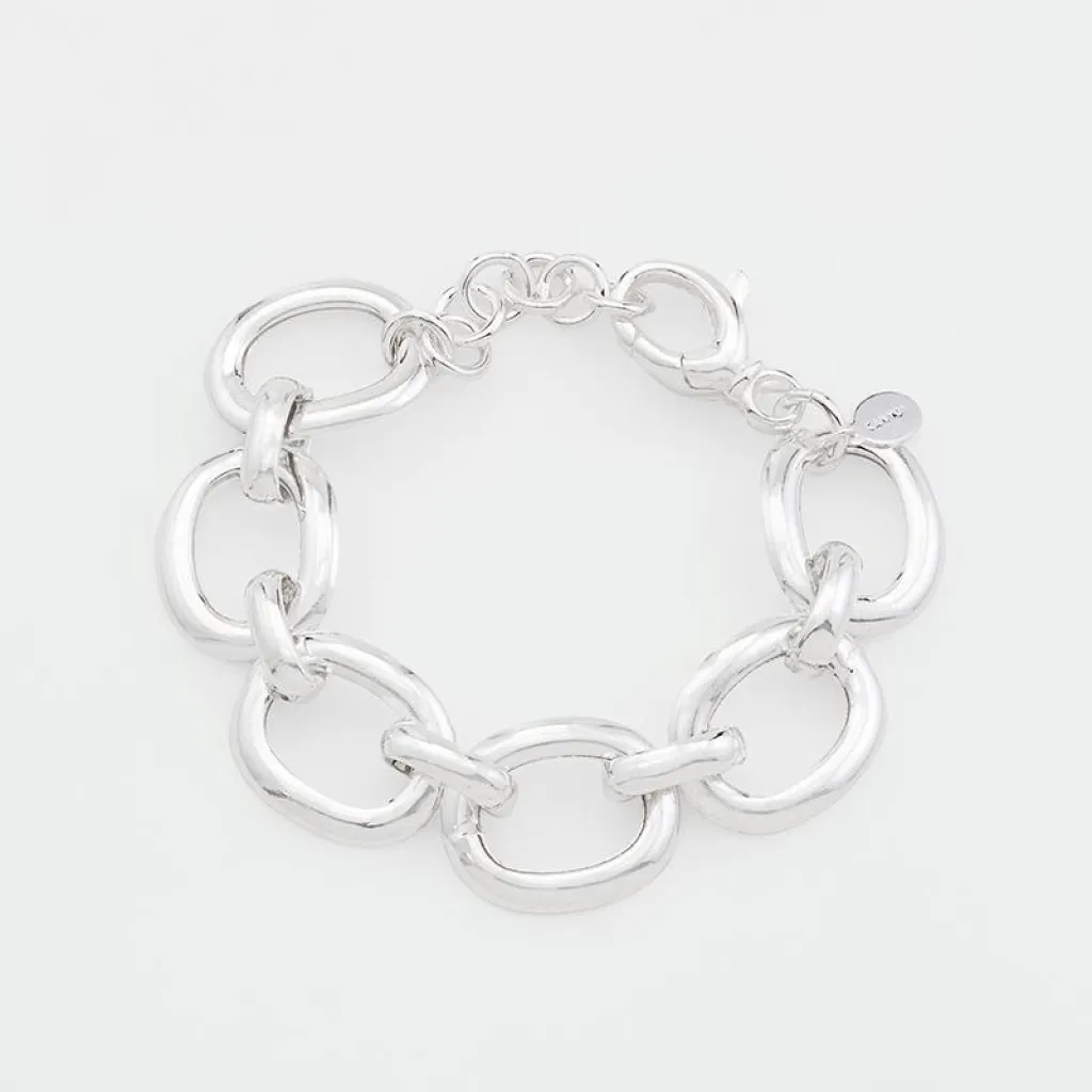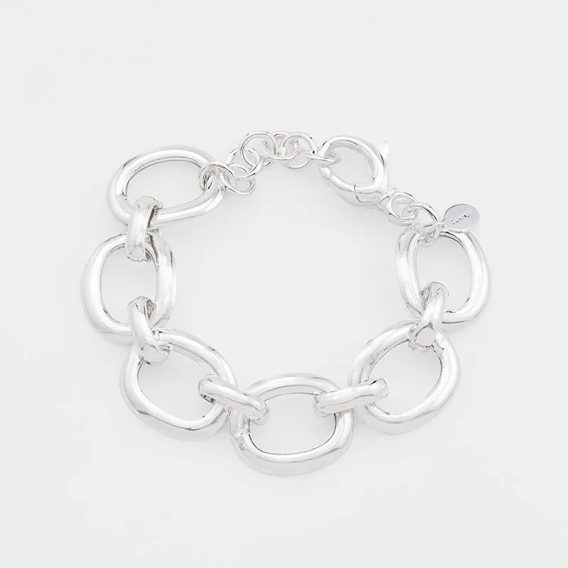 Le bracelet Nyx de la marque Canyon est une pièce imposante en argent 925, constitué de gros anneaux ovales reliés entre eux par des ponts. Son design audacieux et structural apporte une touche de caractère et d'élégance à toute tenue.