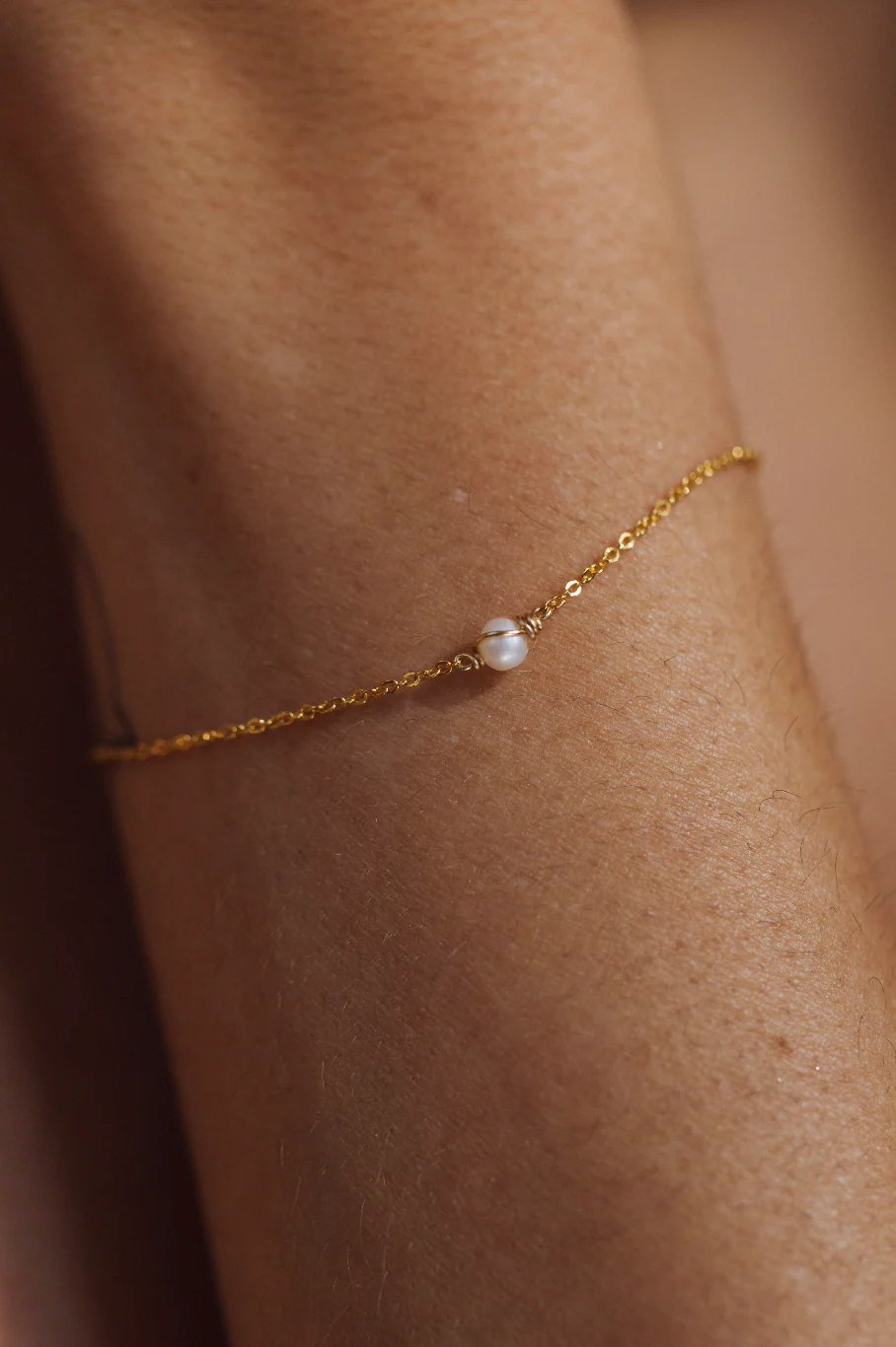 Le bracelet Stella incarne le minimalisme et l'élégance avec sa perle de culture ronde et sa chaîne d'or délicate. Un bijou léger et moderne parfait pour sublimer votre poignet.