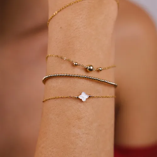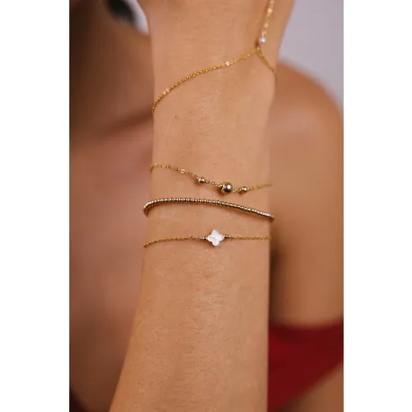 Fabriqué en or laminé, ce bracelet conjugue qualité et confort grâce à ses propriétés hypoallergéniques, idéales pour les peaux les plus sensibles. Le savoir-faire artisanal garantit une attention minutieuse aux détails, assurant que chaque bijou soit à la hauteur de vos attentes.