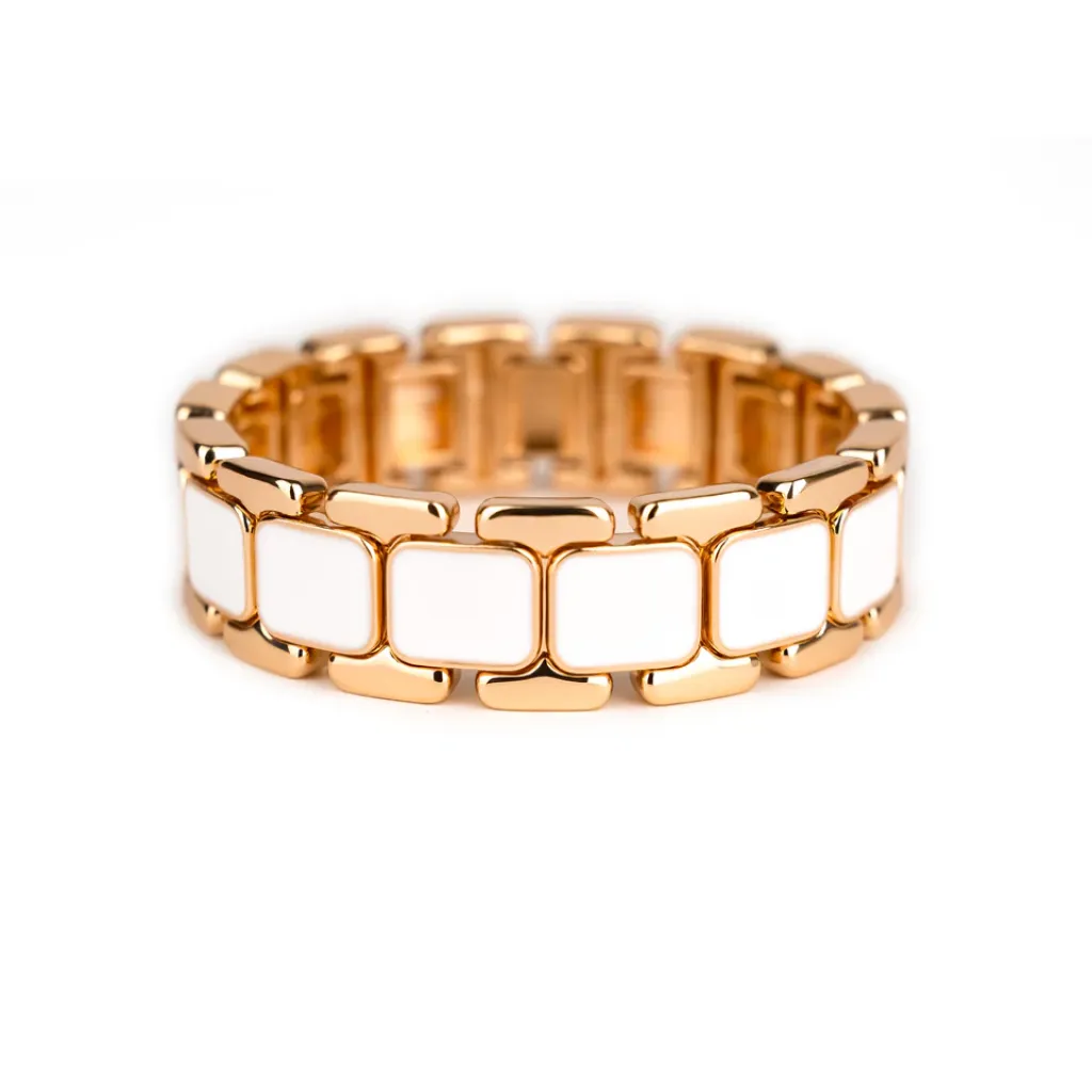Sublimez votre style avec le bracelet Tempo Blanc, une création française de Simone à Bordeaux. Ce bijou en laiton émaillé combine élégance classique et modernité grâce à ses perles rectangulaires et ses finitions dorées.