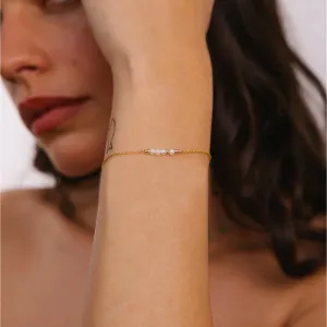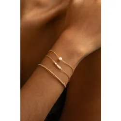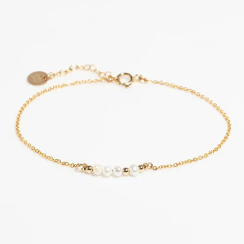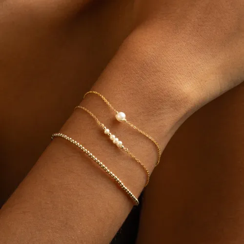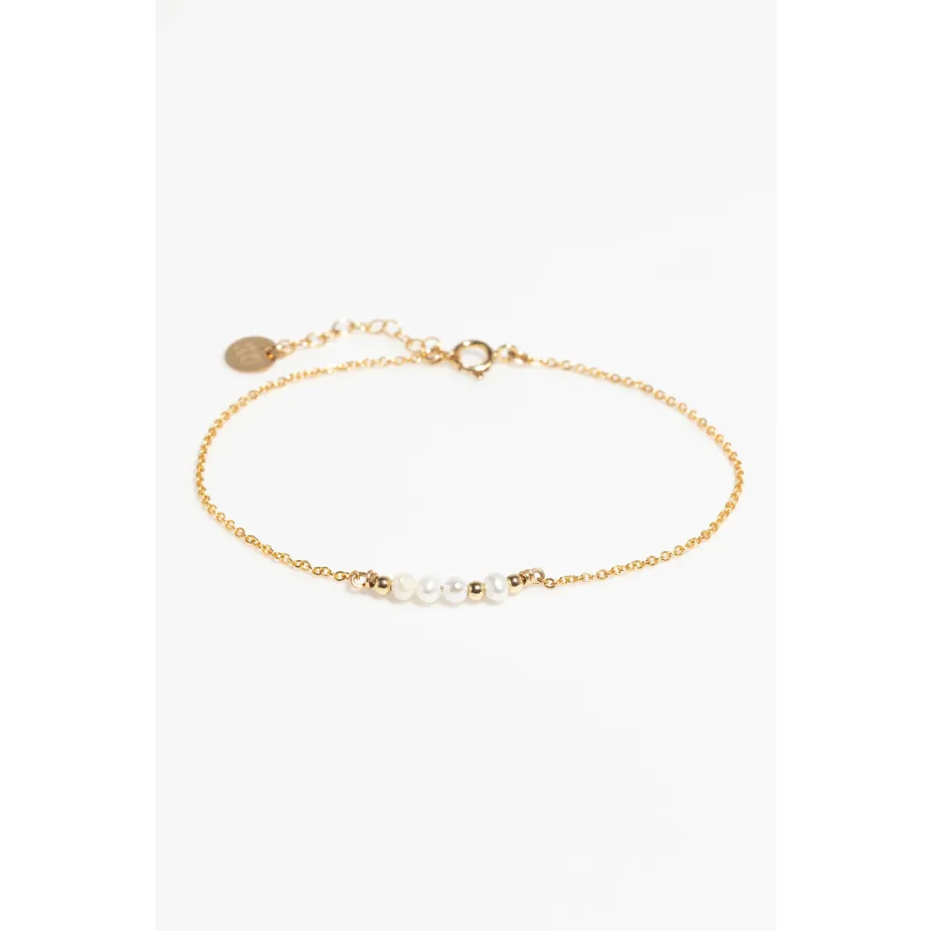 Le bracelet Théa est un hommage à la pureté et à la sophistication, avec des fines perles de culture enfilées sur un fil d'or, rehaussé d'une perle d'or pour un éclat et un rythme uniques.
