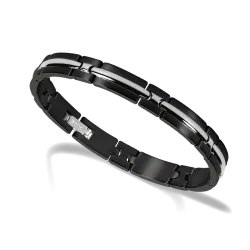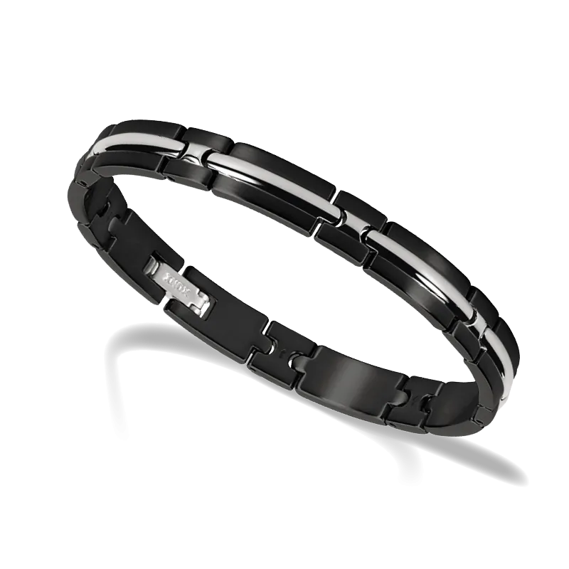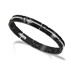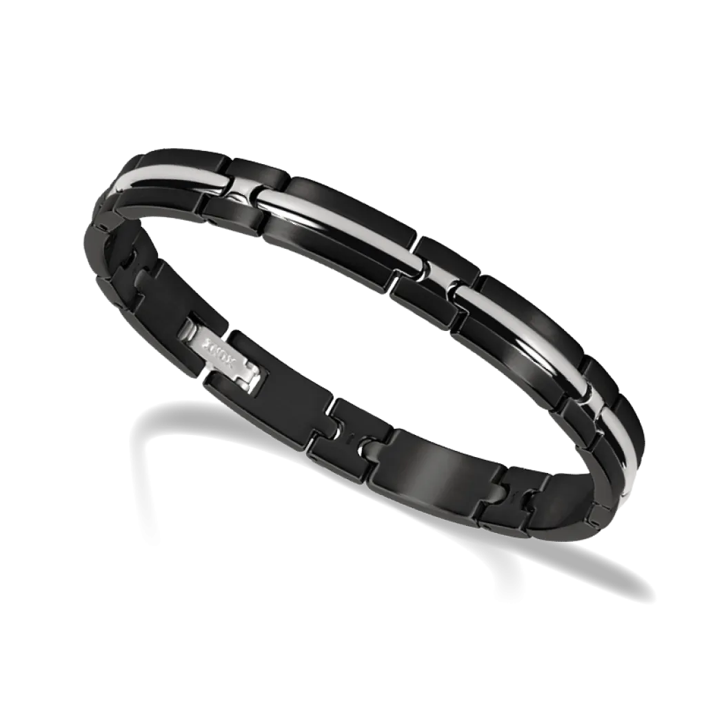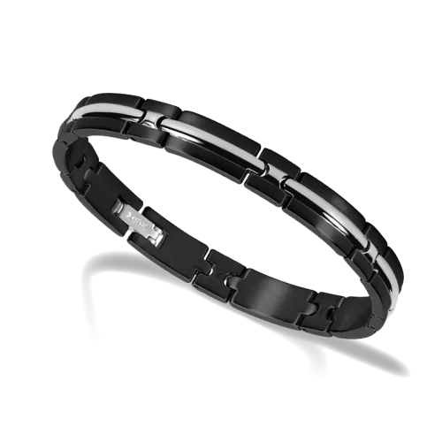 Le bracelet TRINIDAD de Rochet, de 8 mm de large, combine élégamment acier argenté et noir pour un style masculin moderne et distinctif.