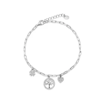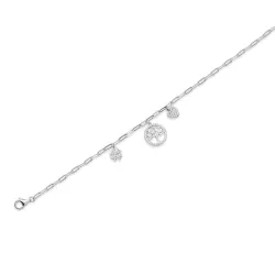 Le bracelet Yoline, une création française raffinée de Guiot de Bourg, est un bijou fin en argent 925. Orné de trois motifs symboliques - un arbre de vie, un cœur et un trèfle - chacun serti de zircons éclatants, il incarne l'élégance et la symbolique profonde.