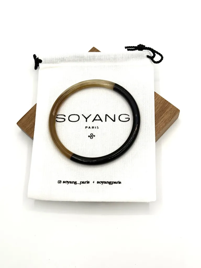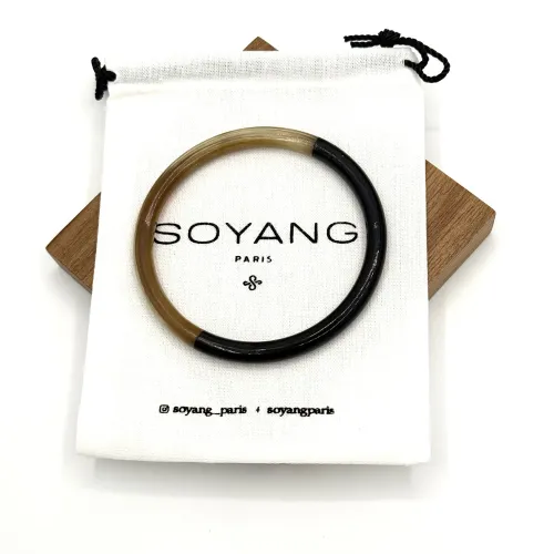 Découvrez l'élégance épurée du jonc fin laque noir, une œuvre d'art raffinée signée par la maison française Soyang. Chaque pièce est créée avec soin en utilisant la corne de buffle et de zébu, des matériaux respectueux de l'environnement qui témoignent d'un engagement envers la durabilité.