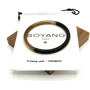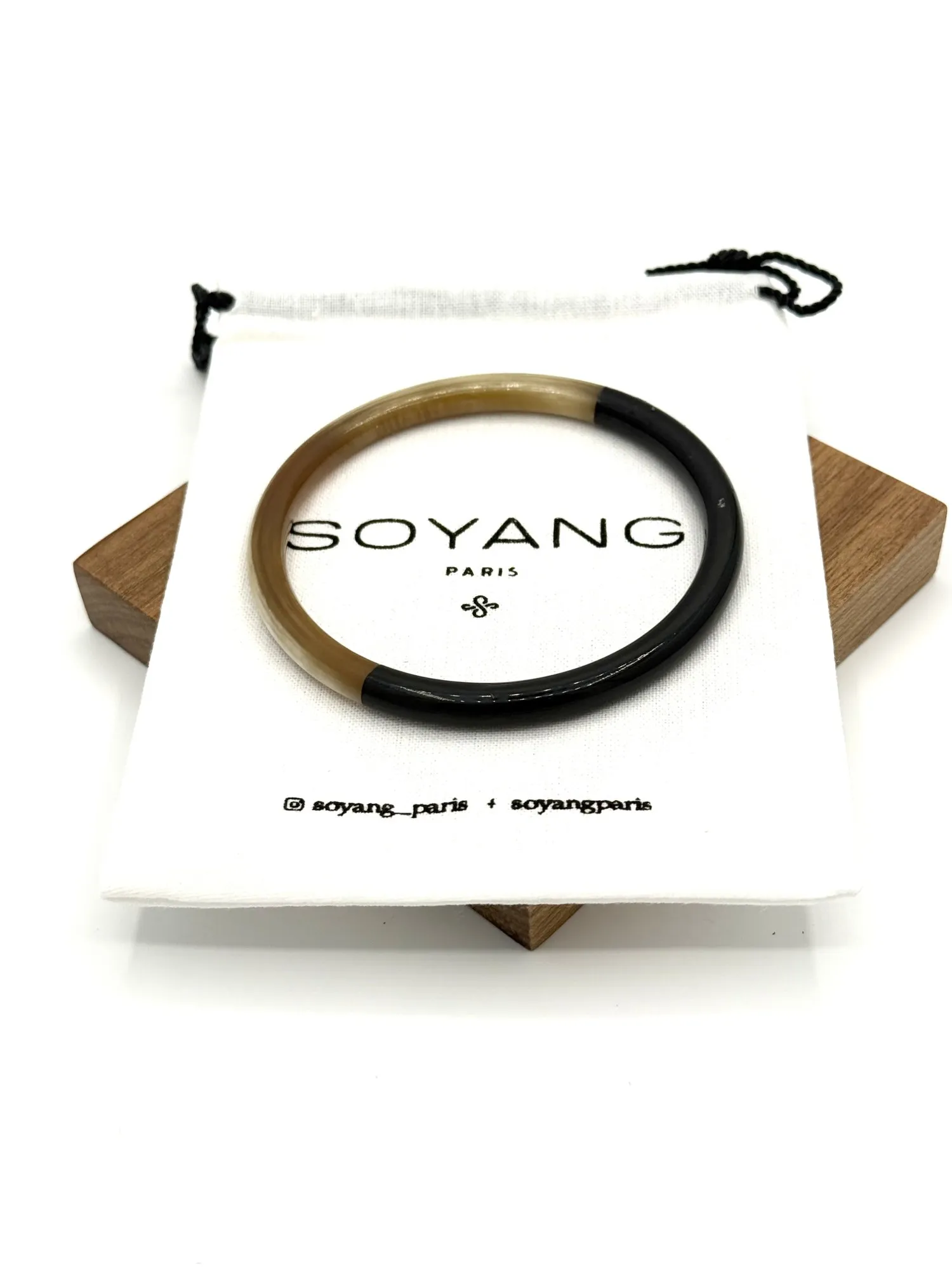 Affirmez votre style avec le jonc fin laque noir de Soyang. Fabriqué à partir de matériaux écologiques comme la corne de buffle et de zébu, ce bijou élégant se démarque par sa finition laquée noire brillante, parfaite pour ajouter une touche de sophistication intemporelle à votre look. Disponible en tailles S, M, et L