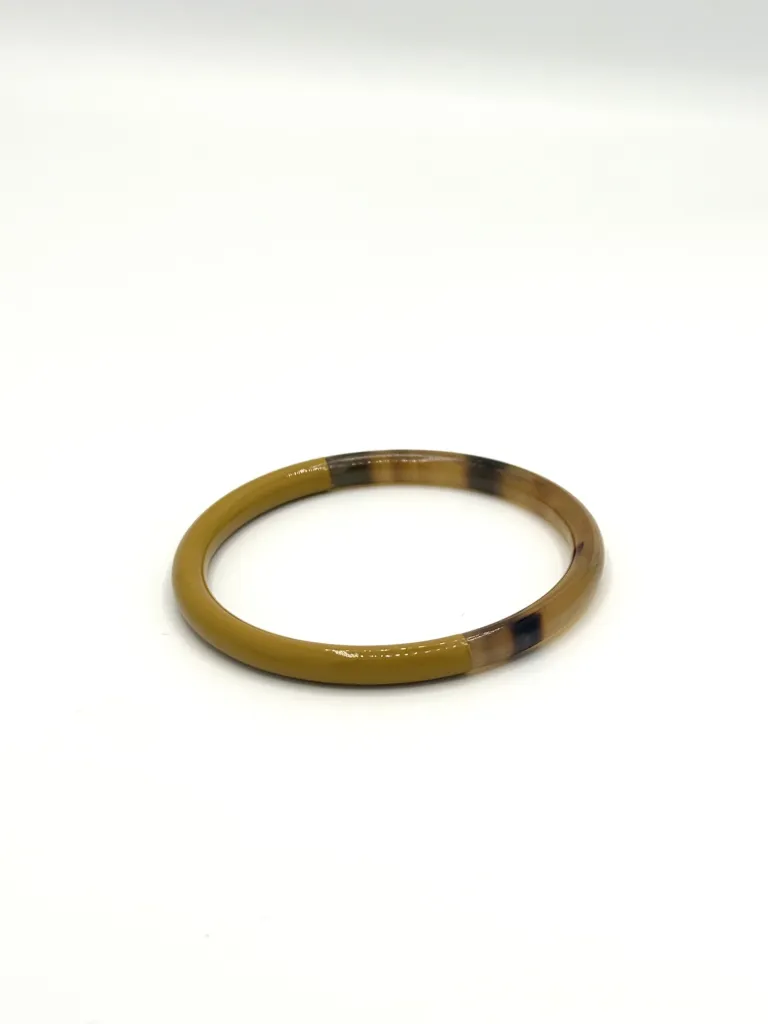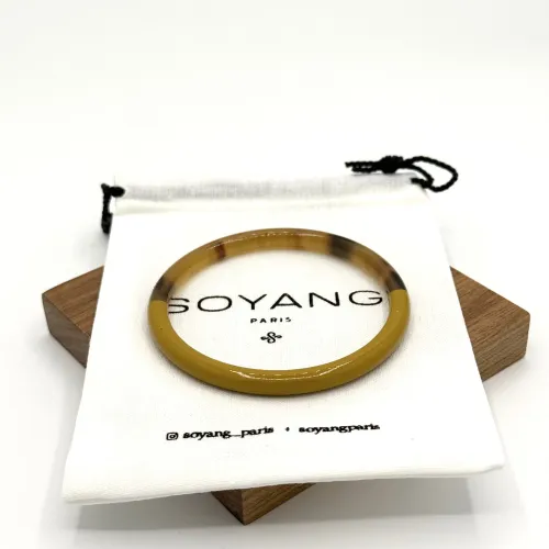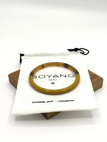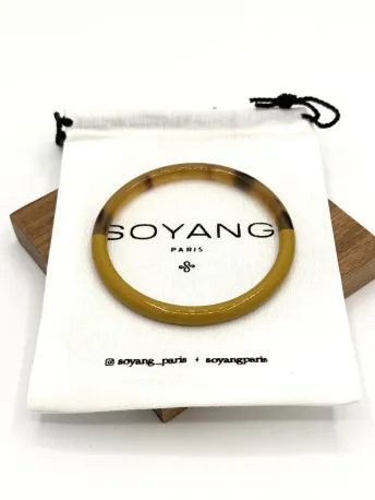 Élégant et éco-responsable, ce jonc fin est une création unique de Soyang. Fabriqué à partir de matériaux respectueux de l'environnement, tels que la corne de buffle et de zébu, il se distingue par sa finition laquée ocre brillante qui illumine votre poignet de sophistication. Disponible en tailles S, M, et L