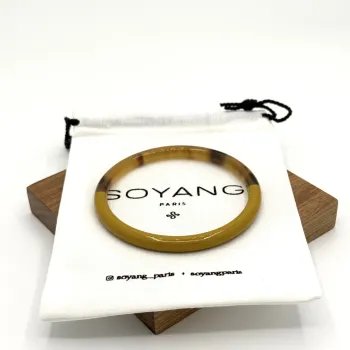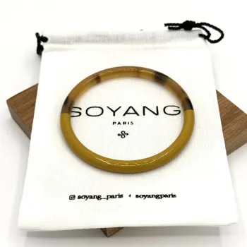 Découvrez l'art de la bijouterie fusionné avec un engagement écologique grâce à ce magnifique jonc fin laque ocre. Conçu par la prestigieuse maison française Soyang, ce bijou est bien plus qu'un simple accessoire. Il incarne une démarche respectueuse de l’environnement en utilisant la corne de buffle et de zébu, des matériaux durables et renouvelables.