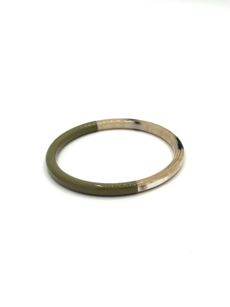 Rehaussez votre tenue avec le jonc fin laque vert cèdre de Soyang. Conçu à partir de matériaux écologiques tels que la corne de buffle et de zébu, ce bijou élégant se distingue par sa finition laquée vert cèdre brillante, parfait pour insuffler une touche de nature à votre style. Disponible en tailles S, M, et L