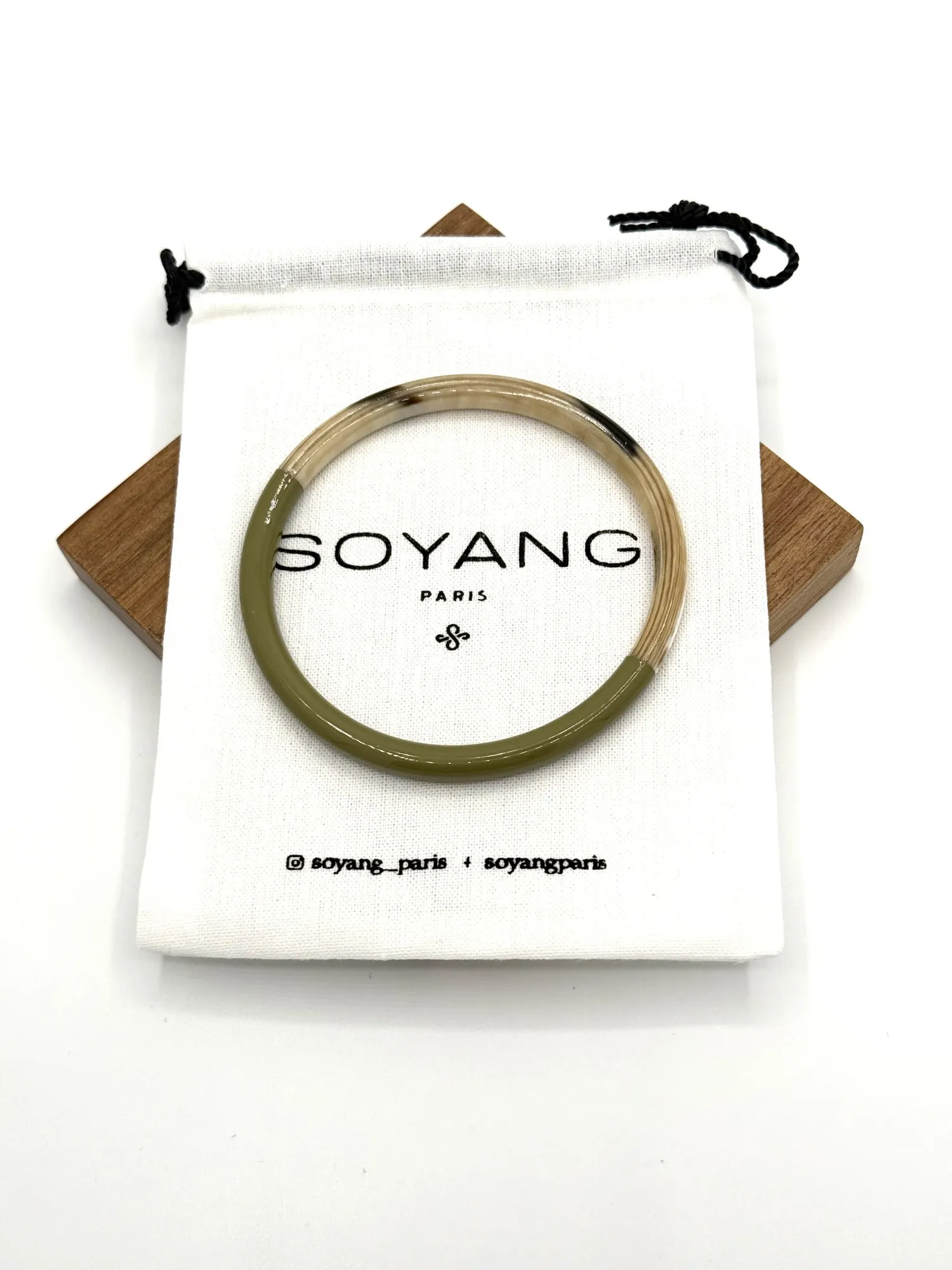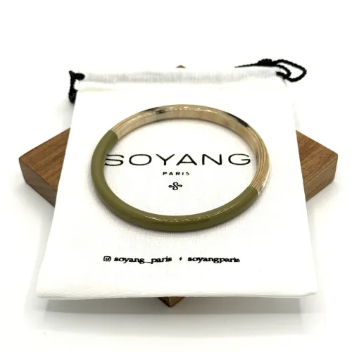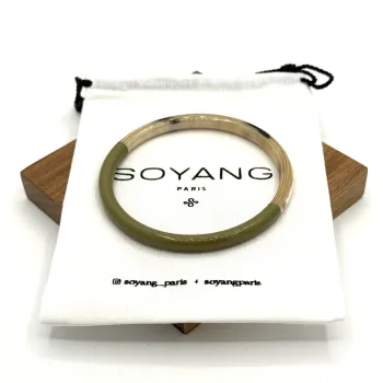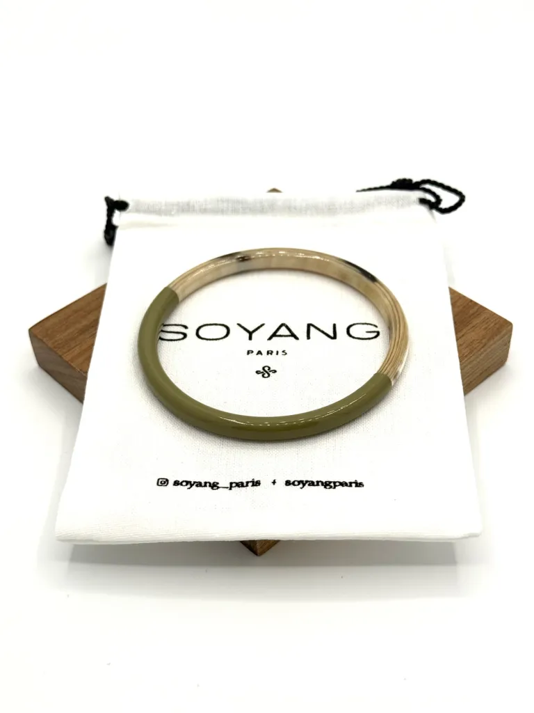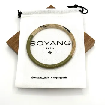 Laissez-vous séduire par l'harmonie tranquille du jonc fin laque vert cèdre, une création exquise de la maison française Soyang. Ce bijou, fabriqué avec la corne de buffle et de zébu, témoigne d'un respect profond pour notre planète grâce à l'utilisation de matériaux durables et respectueux de l'environnement.