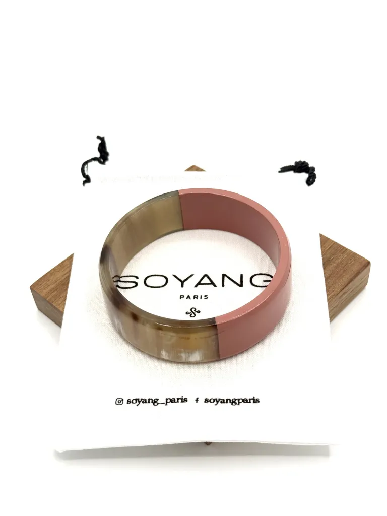 Ajoutez une note douce et élégante à votre style avec ce jonc laqué vieux rose, une création raffinée et artisanale de Soyang. Réalisé en corne de buffle et de zébu, il incarne un mariage parfait entre tradition artisanale et design moderne. Disponible en tailles M, et L