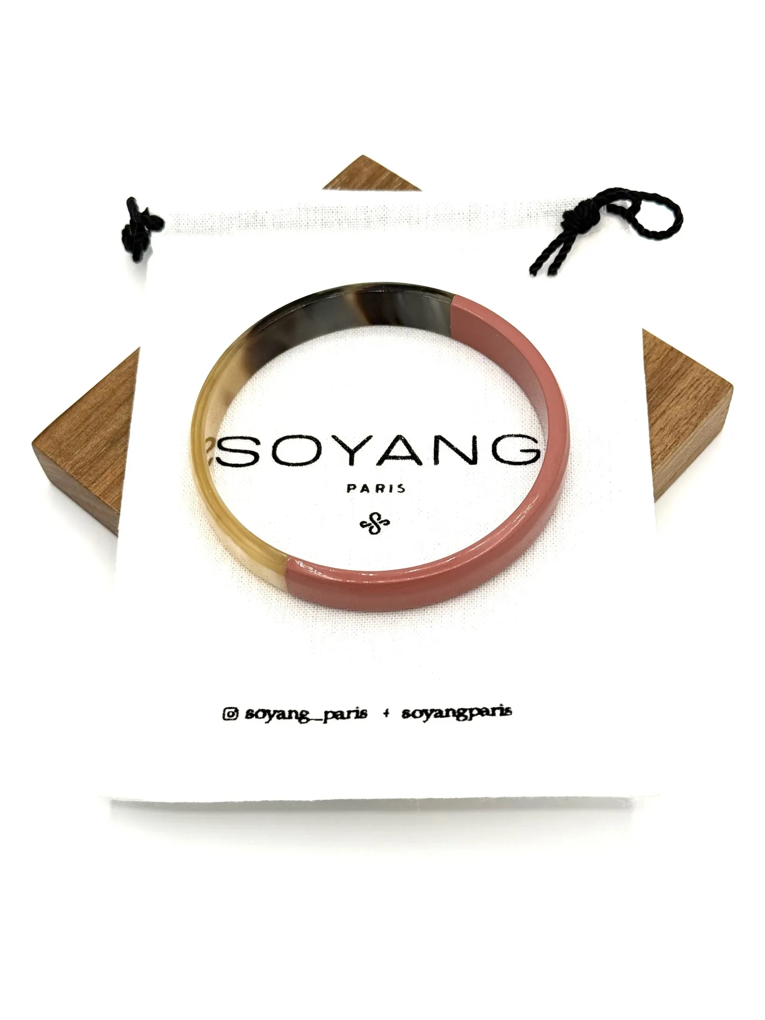 Ajoutez une touche de glamour à votre style avec le Jonc Large Laque Rose de Soyang Paris. Fabriqué à partir de corne de buffle et de zébu recyclée, ce bijou est un hommage à la durabilité et à l'élégance. Disponible en tailles S, M, et L.