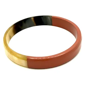 La corne, avec sa texture organique et sa robustesse naturelle, est sublimée par une laque rose délicatement appliquée. Ce processus artisanal confère au jonc une allure éclatante et moderne, tout en gardant une connexion authentique avec la nature. Chaque pièce est ainsi unique, apportant une note personnelle à votre tenue.