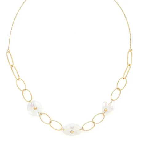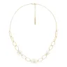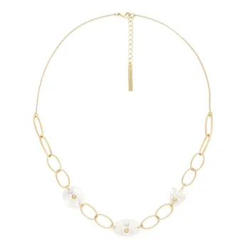 Porter le collier Angélique, c'est choisir l'alliance parfaite entre tradition et modernité. Sa dorure à l'or fin apporte une brillance et une opulence discrètes, tandis que la nacre blanche ajoute une note de douceur et de lumière. Que ce soit pour accessoiriser une tenue de soirée ou pour apporter une touche d'élégance quotidienne, ce collier devient vite indispensable parmi vos bijoux préférés.