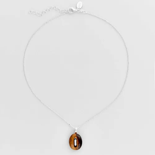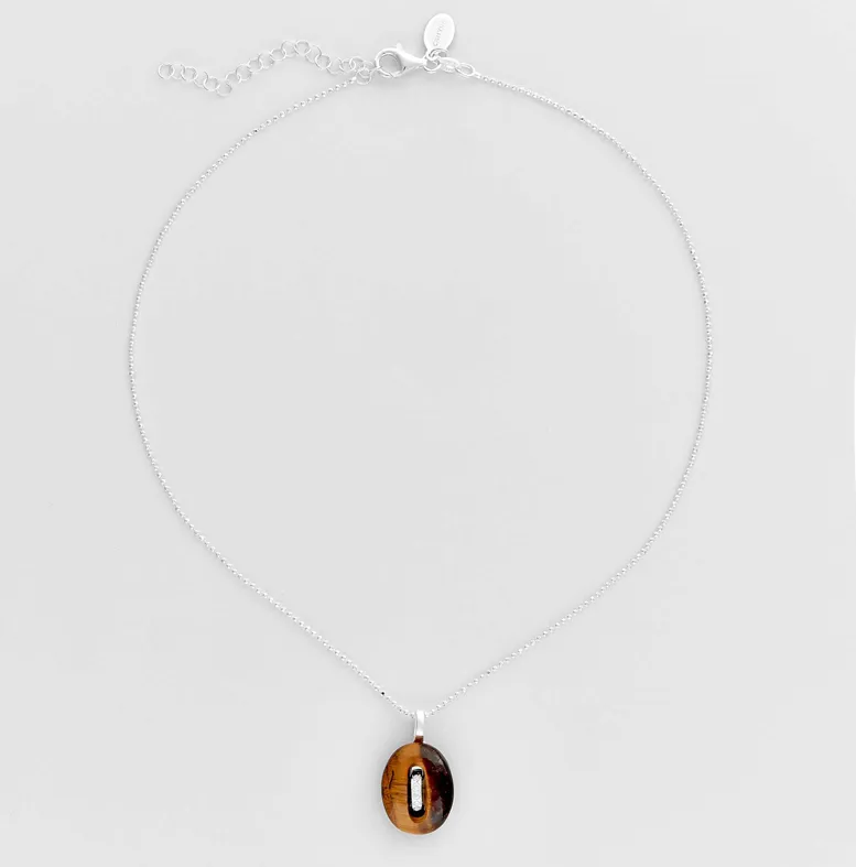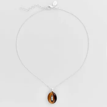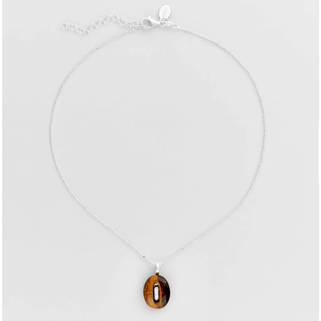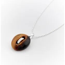 Sublimez votre allure avec ce collier en argent 925 de Canyon, orné d'un pendentif en forme de grain de café en œil de tigre décoré de zircons blancs, suspendu à une chaîne fine de microboules facettées.